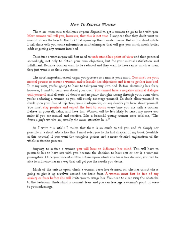 Learn how to seduce women using forbidden psychology triggers. Learn the art of seduction from the cinematic masters. The best anonymous online confessions, secrets & true stories site. But not everyone is excited by the glamorou. How to seduce a woman.